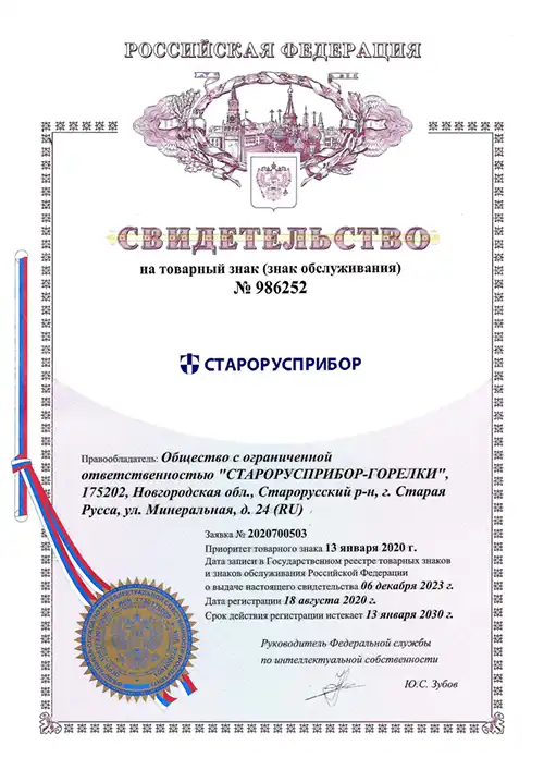 Целый год ушел на регистрацию разделения исключительных прав на товарный знак Старорусприбор. И теперь все, что мы делаем с точки зрения номенклатуры промышленных горелок, автоматики, газовых клапанов официально защищено!