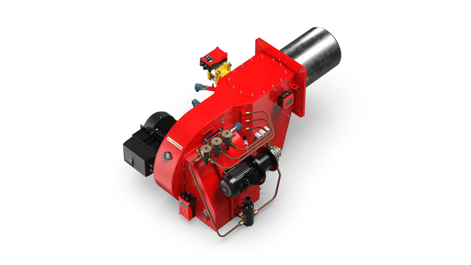Горелка имеет модулируемое регулирование мощности при работе на природном газе и ступенчатое при работе на жидком топливе.